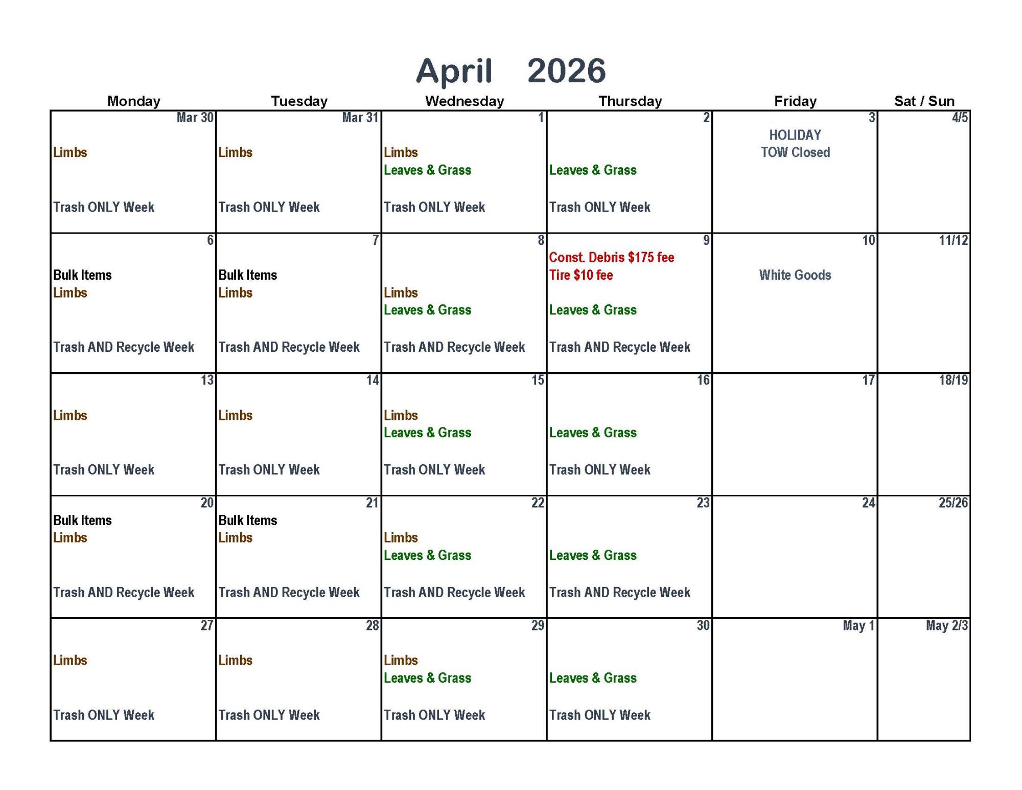 Week of April 6th: Trash AND Recycle Collection.