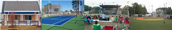With a park expansion completed in 2010, this park encompasses 24 acres and is located adjacent to AG Cox Middle School. It is comprised of 3 youth baseball fields, a large adult softball field, amphitheatre, 1/4 mile walking trail plus numerous connecting sidewalks, newly renovated playground (2018), 2 concession stands, roofed and lighted batting cages, 1 large pavilion and public restrooms. Additional amenities include picnic table, park benches, water fountains and a wooded area.