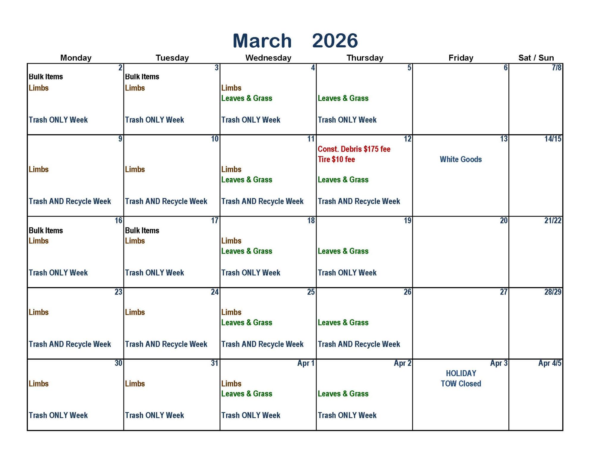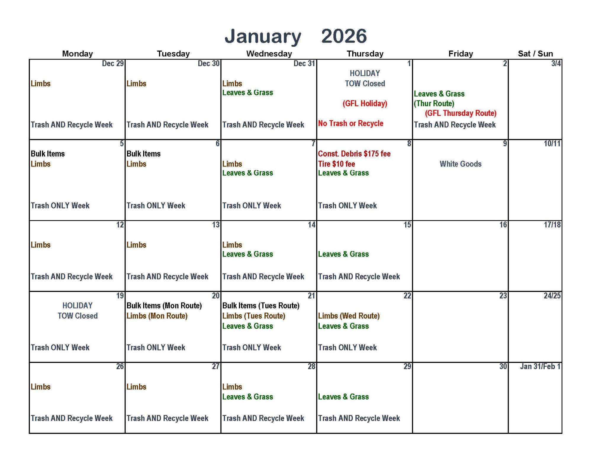 - Also included are updated route maps for limbs, grass, and bulky items.